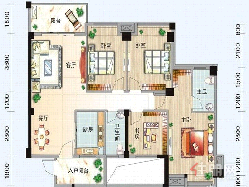 3房2厅0卫 90.0㎡1800.0元/月