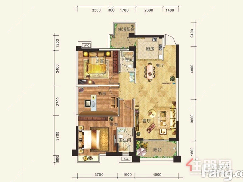 3房2厅0卫 97.0㎡3000.0元/月