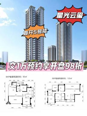 🔥江南腹地 城市C位红盘 ‼️星光宸玺 火爆预约中~ 首开5#93-125㎡四到五房 #交一万预约金享开盘98折➕价值188元新年礼盒